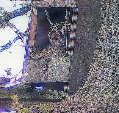For the first time in several years, we have been pleased to see a tawny owl take up residence in our owl box. She is now raising her family of owlets. A CCTV camera has been set up to allow tenants and visitors to watch the comings and goings on the TV in the common room. Thanks to everyone who contributed to the collection for the camera system. We also have cameras set up in two bird boxes and on our bird feeders. Unfortunately, no birds have nested in the bird boxes this year, but we have seen a wide variety of birds using the feeders. | ![]() |